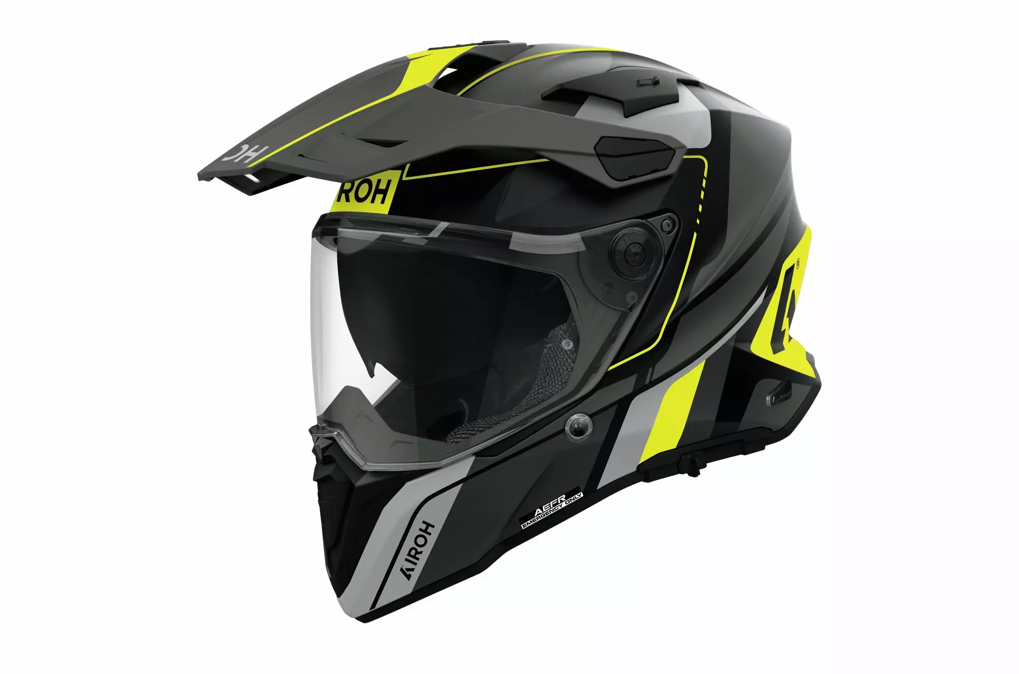 Erityisen laaja visiiri takaa esteettömän näkymän tiellä ja maastossa. Visiiri on naarmuuntumaton ja UV-suojattu, ja sen varustukseen kuuluvat A3S (Airoh Automatic Antifog System), lukitusjärjestelmä sekä Pinlock® 120 XLT MaxVision -kalvo, joka sisältyy pakkaukseen.