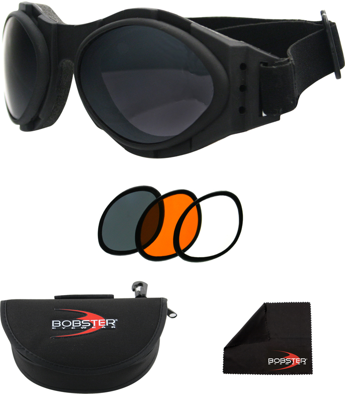 Bobster bugeye ajolasit ovat remmilliset ajolasit ja niissä on irrotettavat linssit.Mukana tulee 3 eri linssivaihtoehtoa, kiillotusliina sekä kantopussi.Ohimosta ohimoon 135mm, 100% UVA ja UVB suoja.