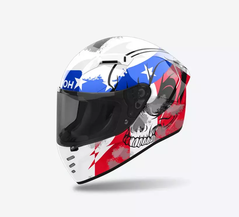 - Tarjoaa extra laajan näkökentän, ATVR (Airoh Tool-less Visor Removal) mahdollistaa visiirin työkaluttoman irrottamisen, huurtumisenestoasennon, lukitusjärjestelmän, naarmuuntumattomuuden ja UV-suojan.