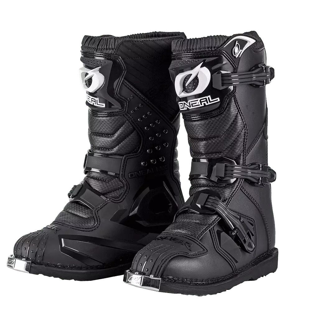 O'Neal Rider ajosaappaiden ruiskupuristetut muovilevyt suojaavat hyvin iskuilta. Metallivarsi vahvistaa saappaan muotoa ja lisää tukea.