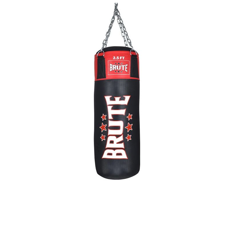Brute nyrkkeilysäkki on erinomainen perussäkki lyöntien ja potkujen harjoitteluun. Säkki on valmistettu laadukkaasta synteettisestä PU-nahasta, joka tarjoaa sille erinomaisen kestävyyden ja hyvän tuntuman. Tukeva pehmustus takaa tehokkaan iskunvaimennuksen, mikä sopii hyvin myös voimakkaisiin lyönteihin ja potkuihin. Säkki on varustettu erityisvahvistetuilla teräsrenkailla, joten sen voi ripustaa ketjun tai muiden menetelmien avulla.