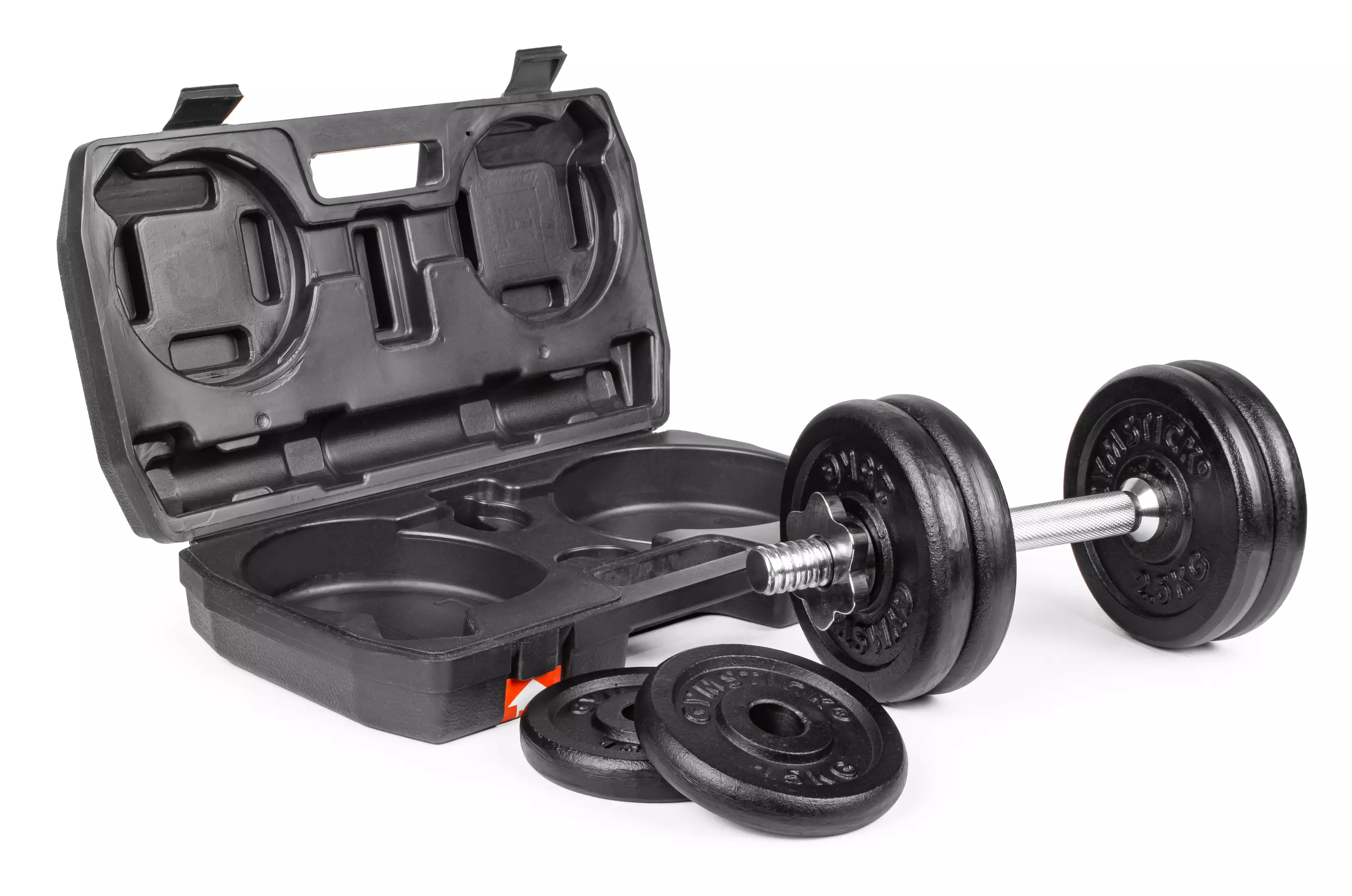 20-kiloinen säädettävä käsipainosarja tehokkaaseen lihaskuntoharjoitteluun. Rautaiset levypainot yhdessä teräksisten tanko-osien kanssa takaavat kestävyyden kovassakin harjoittelussa. Tanko-osan karhennus mahdollistaa pitävän otteen tuoden turvallisuutta harjoitteluun. Käsipainon säätäminen on helppoa mukana tulevien kierrelukkojen avulla.