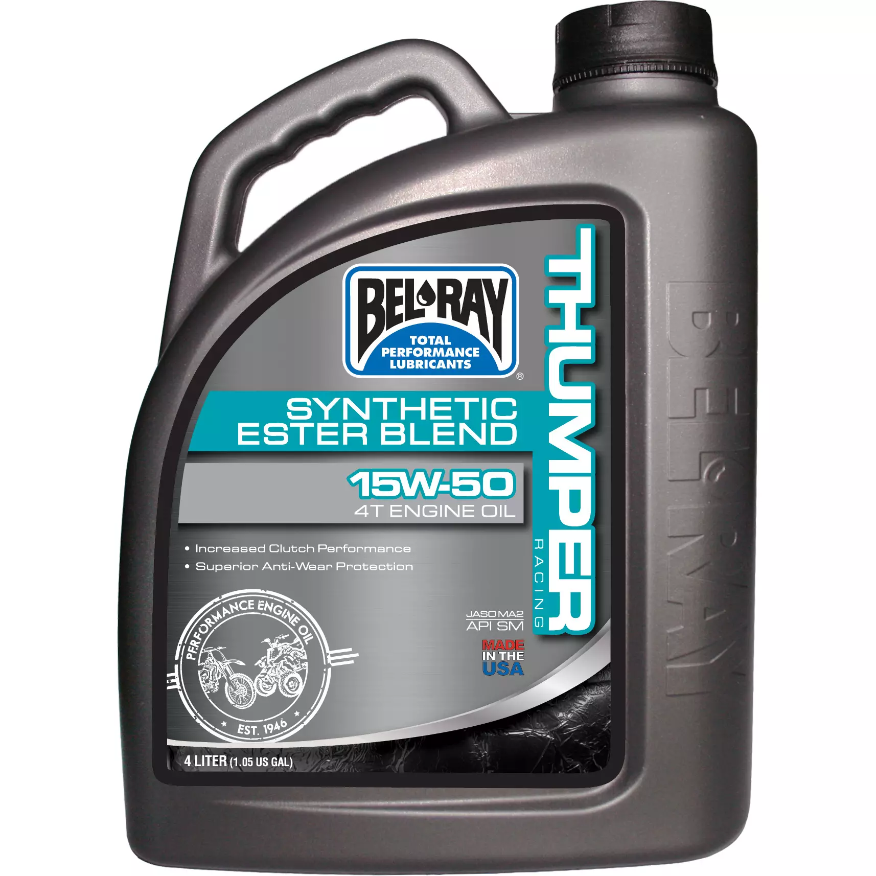 Bel-Ray THUMPER 10W-40 1L. BEL-RAY Thumper 4-T Racing Motor Oil on premiumluokan öljy, joka on kehitetty nimenomaan uusia nelitahticrossipelejä varten, jotka asettavat