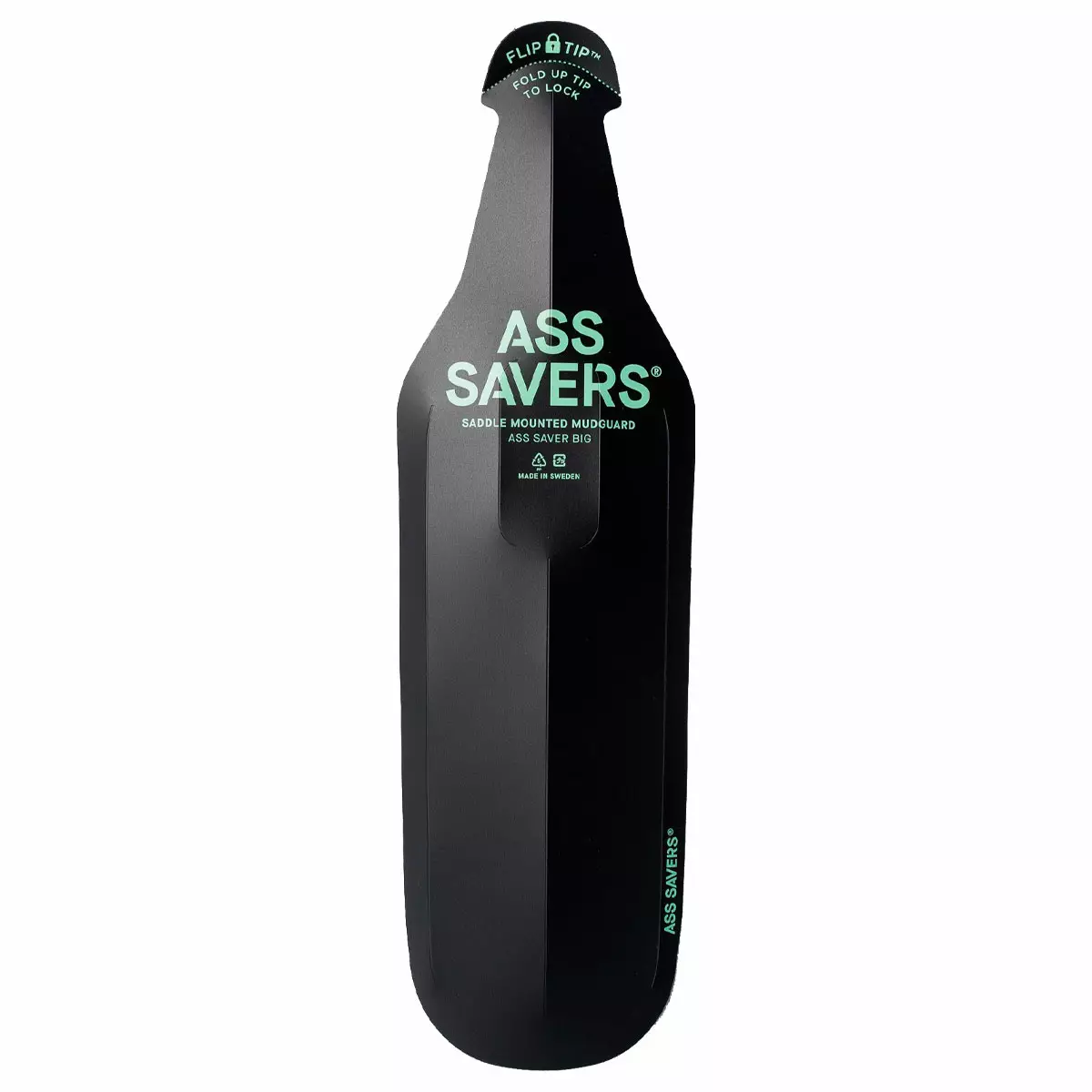 Ass Saver Big on alkuperäinen ja laajennettu pikalokasuoja, joka on suunniteltu erityisesti leveämmille renkaille. Se kiinnittyy nopeasti satulakiskoon ilman työkaluja ja tarjoaa erinomaisen roiskesuojan säällä kuin säällä.