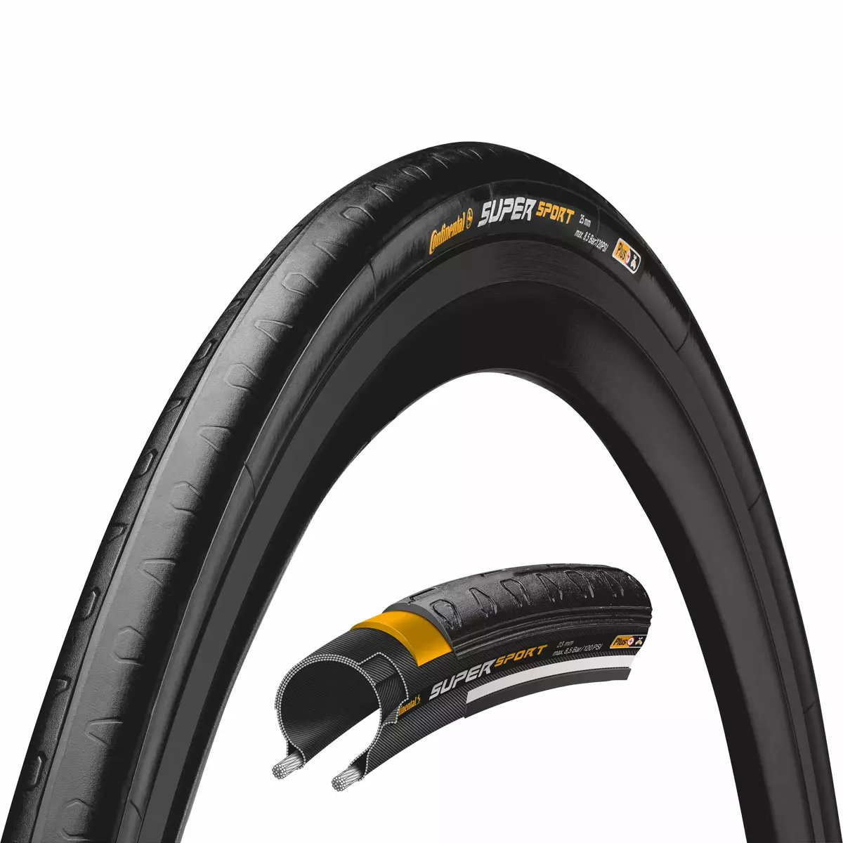 Erikoispaksu runko ja vahvistetut renkaan sivut tuovat lisää kestävyyttä, ja paksumpi kulutuspinta pidentää käyttöikää merkittävästi. Vaikka suojaus on vahva, se ei heikennä renkaan vierintäominaisuuksia tai kaarreajon vakautta. SuperSport Plus on siis täydellinen kompromissi turvallisuuden ja suorituskyvyn välillä.
