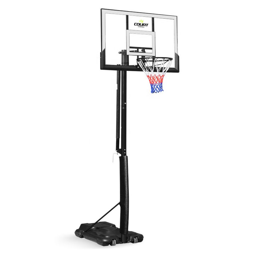Court Champ Basketball Hoop on täydellinen valinta ulkokäyttöön suunnitellulle koripallotelineelle. Tämä monipuolinen teline takaa jämäkkyyden ja vakauden, sillä sen pohja voidaan täyttää joko hiekalla tai vedellä. Näin se pysyy tukevasti paikoillaan kovissakin peleissä. Telineen pohjassa olevat siirtopyörät tekevät sen siirtämisestä vaivatonta, joten voit helposti vaihtaa pelipaikkaa tarpeen mukaan.