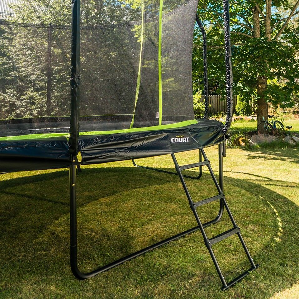 Court Trampoliinin tikkaat ovat kätevä lisäosa, joka helpottaa trampoliinin käyttöä. Tikkaat sopivat kaikkien Court-trampoliinien kanssa ja niissä on kestävä rakenne. Tikkaissa on kaarevat koukkupäät, jotka varmistavat tikkaat paikalleen trampoliinin runkoon.